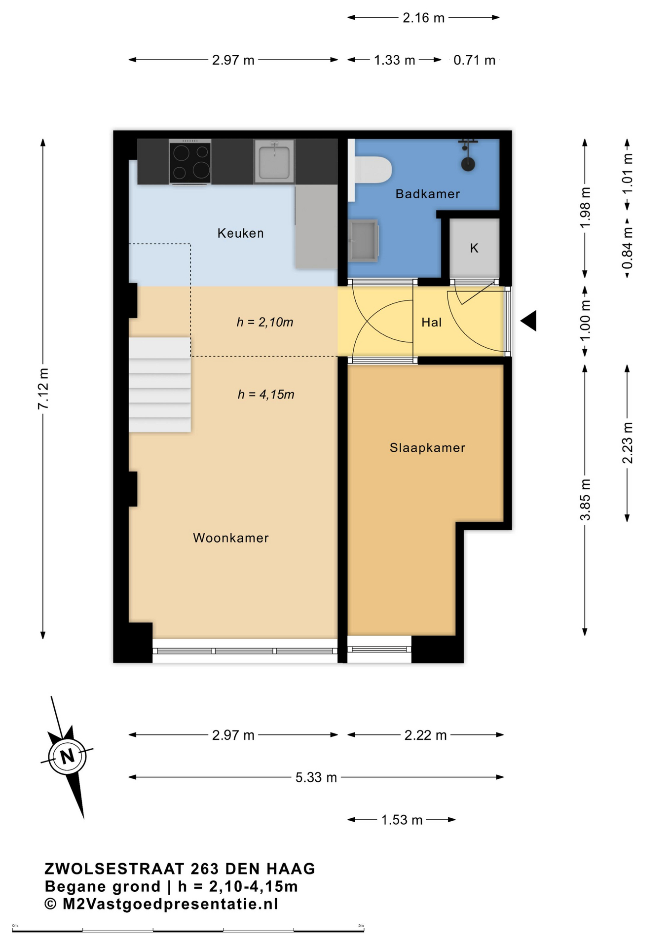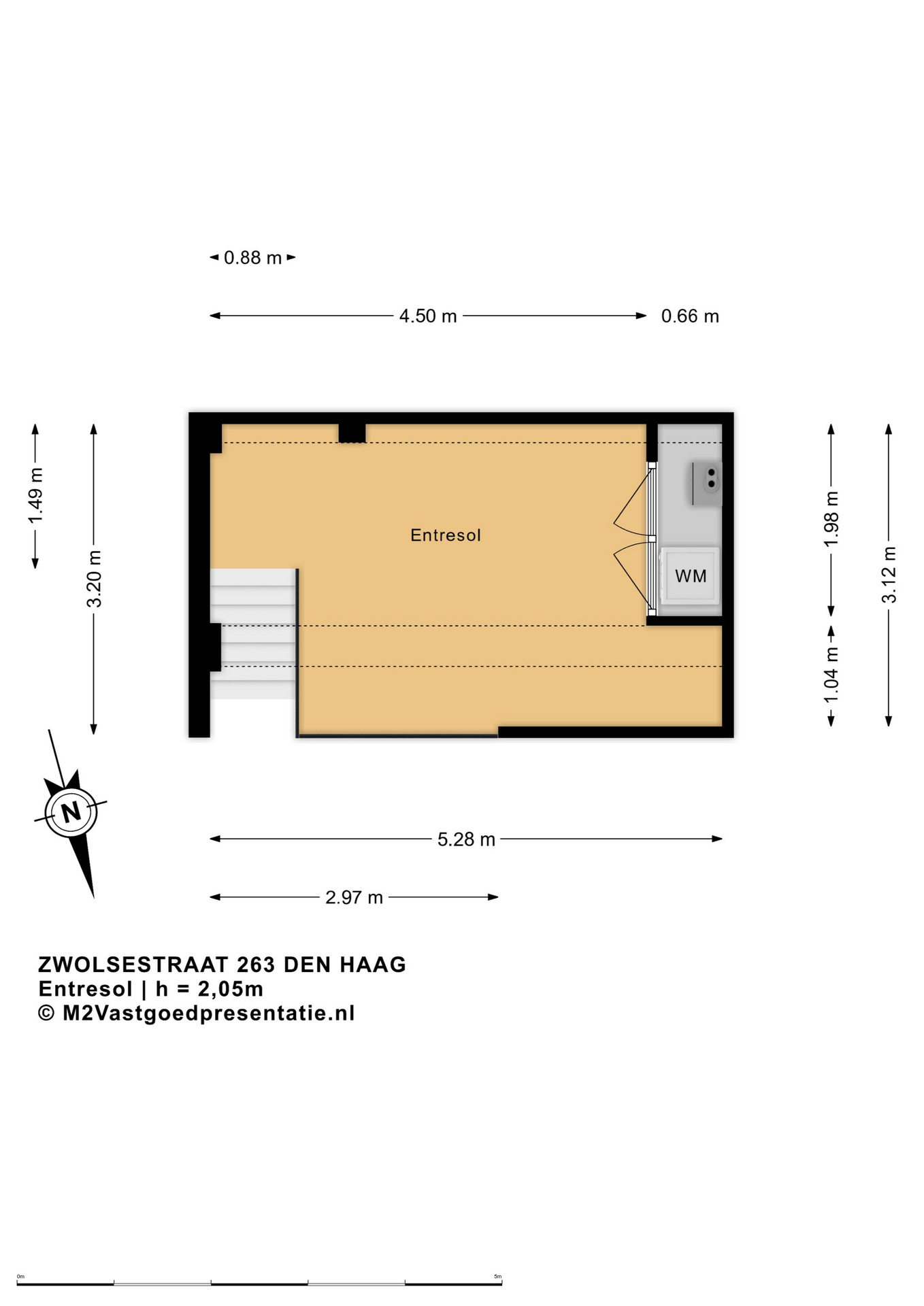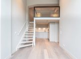 Entree complex voor 263/263a, entree appartement, hal met garderobekast, luxe badkamer voorzien van hoogwaardig tegelwerk, wandtoilet, inloopdouche met glazen wand en meubel met waskom. Vanuit de hal de indrukwekkende living met een plafondhoogte van ca. 4,1 meter waarbij de gigantische raampartij aan de voorzijde voor een spectaculaire lichtinval zorgt. In de woonkamer is een entresol geplaatst die op meerdere manieren valt te gebruiken, bijvoorbeeld als zitkamer, riante werkkamer of hoofdslaapkamer. Onder de entresol is de luxe keuken gerealiseerd met hardstenen werkblad en hoogwaardige inbouwapparatuur. De naastgelegen slaapkamer is ook vanuit de hal te bereiken en is goed van formaat.