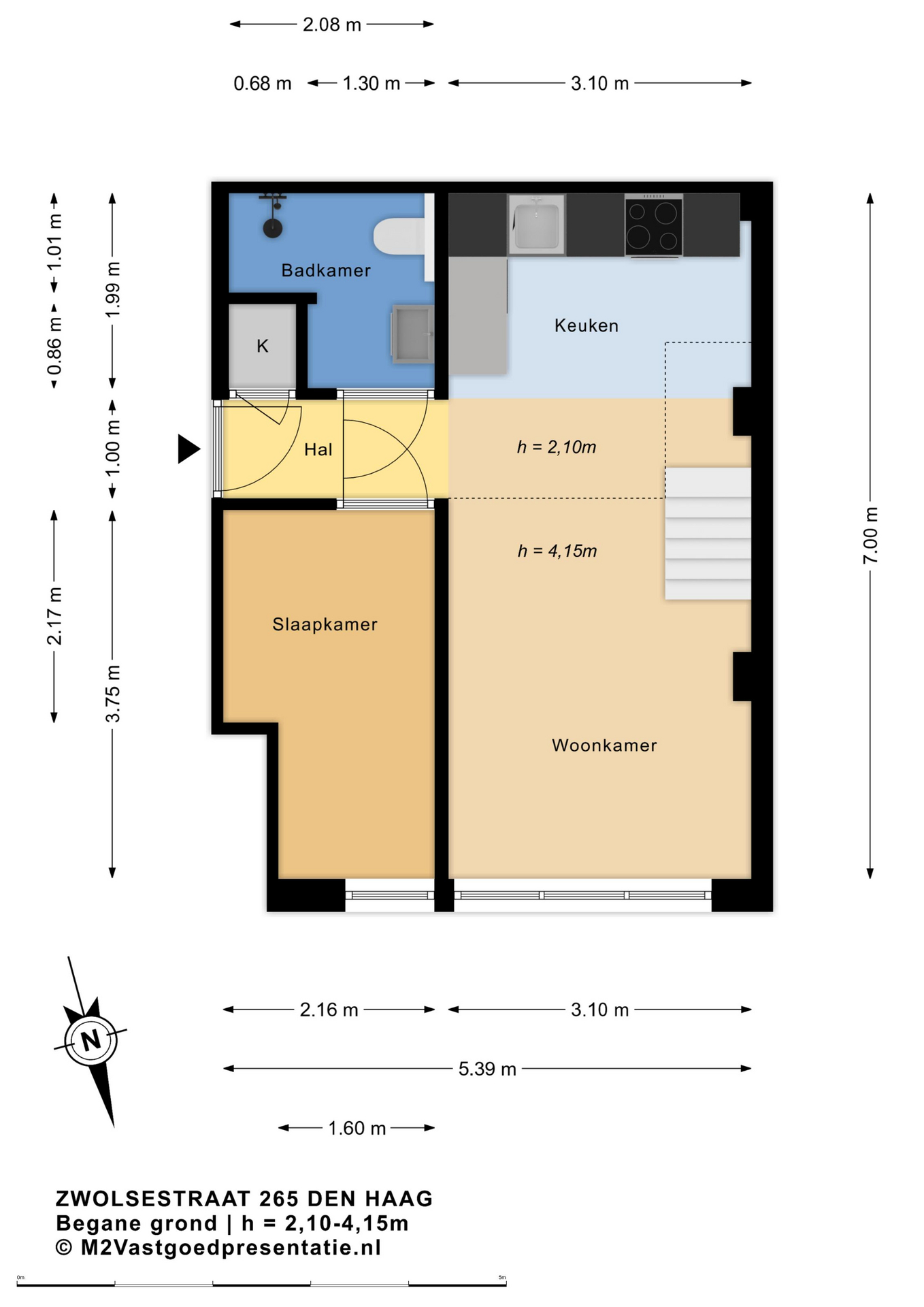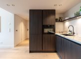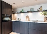 Entree complex voor 265/265a, entree appartement, hal met garderobekast, luxe badkamer voorzien van hoogwaardig tegelwerk, wandtoilet, inloopdouche met glazen wand en meubel met waskom. Vanuit de hal de indrukwekkende living met een plafondhoogte van ca. 4,1 meter waarbij de gigantische raampartij aan de voorzijde voor een spectaculaire lichtinval zorgt. In de woonkamer is een entresol geplaatst die op meerdere manieren valt te gebruiken, bijvoorbeeld als zitkamer, riante werkkamer of hoofdslaapkamer. Onder de entresol is de luxe keuken gerealiseerd met hardstenen werkblad en hoogwaardige inbouwapparatuur. De naastgelegen slaapkamer is ook vanuit de hal te bereiken en is goed van formaat.