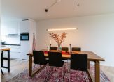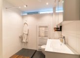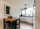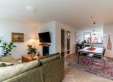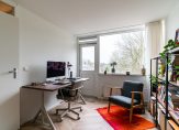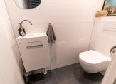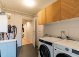 The bright and spacious entrance hall features a cloakroom for coats and shoes and provides access to the first bedroom on the ground floor, which opens directly onto the garden. At the end of the hallway, you’ll find the utility room, complete with a sink, the Remeha central heating system (installed in 2023), and sufficient space for your washing machine, dryer, drying rack, and ironing board. A door leads to the beautifully landscaped, southwest-facing garden, where a brand-new veranda offers a sheltered spot to relax year-round.