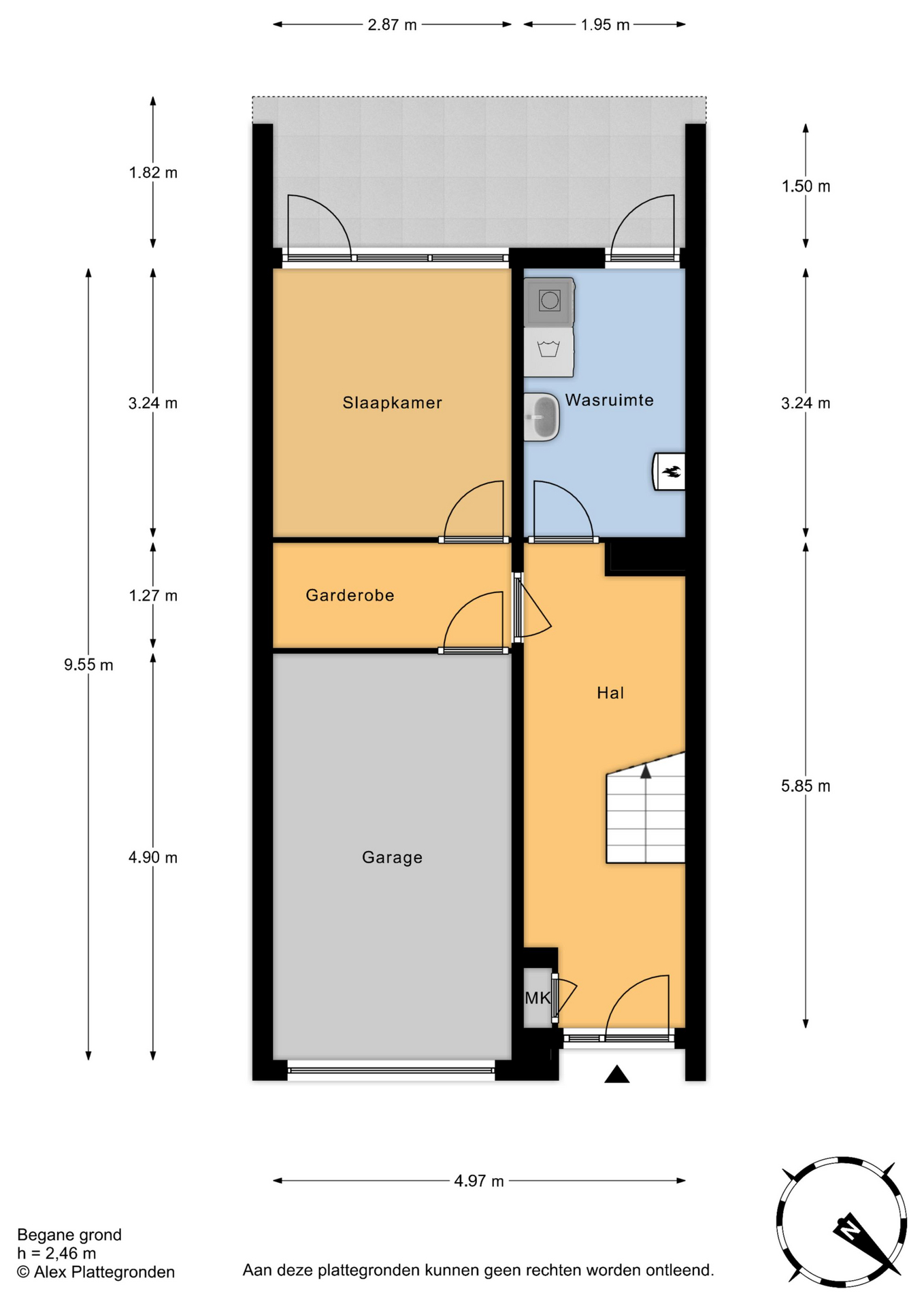 Vanuit de rustige straat, met enkel bestemmingsverkeer, toegang tot de woning. Uw auto en fietsen parkeert u gemakkelijk, dankzij de nieuwe elektrische deur, in uw eigen garage. Ruimte te over voor al uw gereedschap, koffers, kerstspullen of mancave. Lichte en brede hal met de meterkast, garderobe(kamer) voor alle jassen en schoenen.